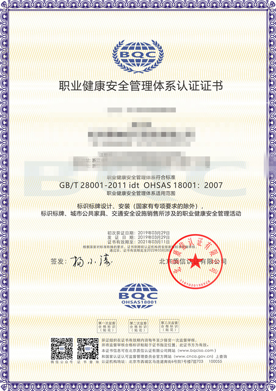 北京質信認證是國家認證認可監督管理委員會批準(批準號:CNCA-R-2017-313)的獨立公正的三方審核認證機構,可從事ISO9001質量管理體系認證、ISO14001環境管理體系認證、ISO45001職業健康安全管理體系認證,頒發相應的認證證書。質信認證由我國認證界資深從業人士發起設立,目標是成為一家國際領先民族認證品牌,在扁平化的全球競爭中,不斷發展壯大自己,有力地服務于各類組織。