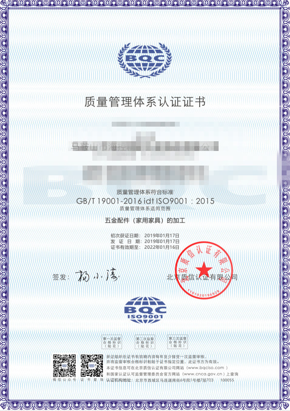 • 建材公司ISO質量認證證書