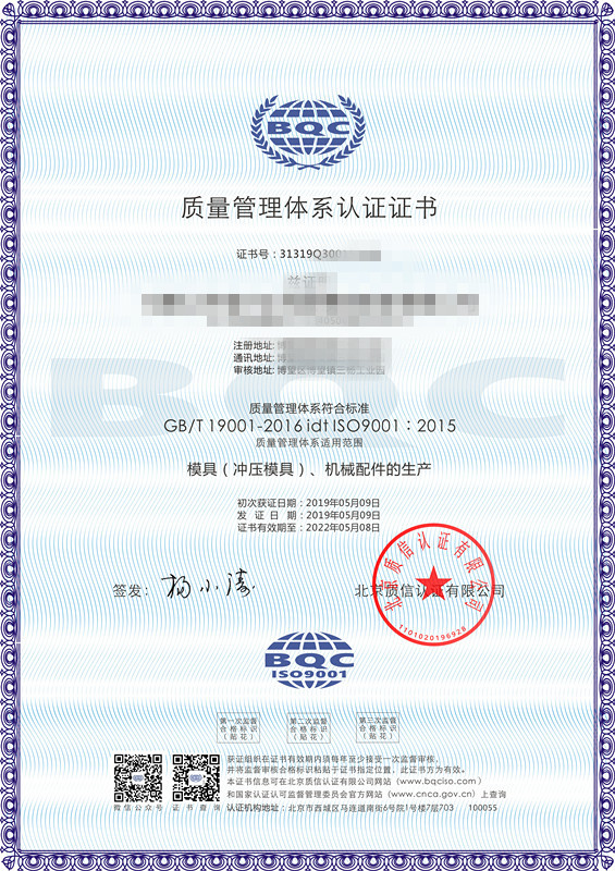 • 機械制造行業單體系認證證書